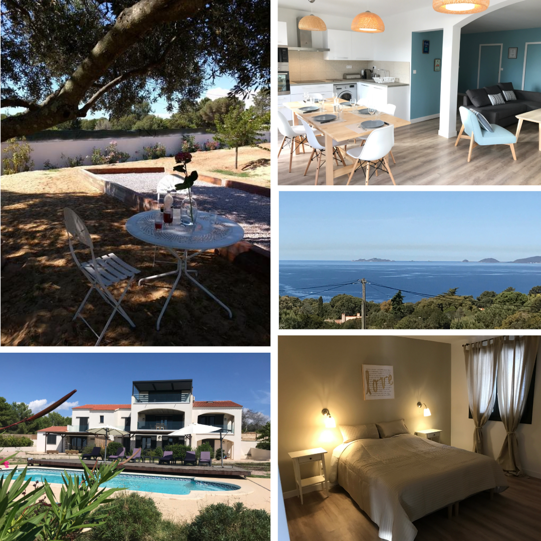 Piscine chauffée, pool house, terrain de pétanque. Appartements tout équipés.