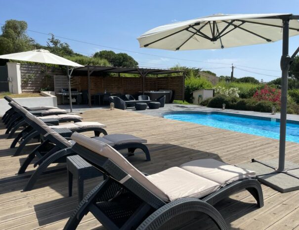 Décoré dans un style contemporain chaleureux, l’appartement allie confort haut de gamme et ambiance authentiquement corse. La piscine privative, accessible à volonté, complète idéalement ce havre de détente.